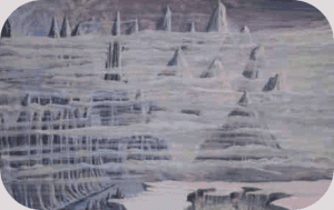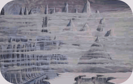 ”Hindarfjell” eller den eldklippa, där Brynhild eller Brünhilde låg i evig sömn finns på riktigt. Detta är Externsteine i Tyskland, en plats jag själv besökt… Klippan ”Sternewache” vid det skarpa ljuset till höger i bild, sägs vara den plats där Sigurd väckte henne, och hon sjöng ”Sigdrifumál” för människorna.