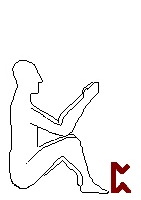 Som ”Stadhagalder” eller stående gest kan den göras på lite olika sätt – ett sådant visar bilden här ovan, ett annat är att stå med rak kropp (det lodräta strecket i runan) och sedan ”höfter fäst” med ena arrmen, så att axelled, armbågsleden och sedan handen på din höft bildar ”törnet” eller den trekantiga delen av runan. Enkelt – eller hur ?