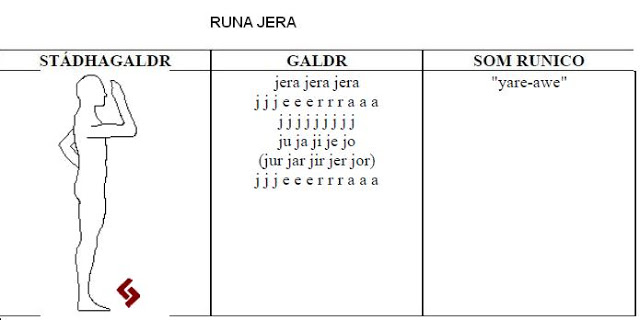 Många undrar idag också om den Stadhagalder eller ”stående galder” som praktiseras på Island är äkta. Till skillnad från ”glimurstadha” eller sätten att positionera sig i Glima, den isländska nationalsporten, finns det inga äldre skriftliga bevis på att människor ställde sig i ställningar, som liknade runor, ifall vi nu inte ska ta hällristningarnas tecken och diverse – som man antagit ” kultstatyer” som ett bevis på att detta faktiskt förekom. Man vet emellertid, att ”stadha” använts för att lära isländska skolbarn det latinska alfabetet, så sent som på 1800-talet, och även om vi saknar de avgörande bevisen, så förekom antagligen run-tecken tecknade med händerna och kroppen långt före tyska mystiker inom det sk ”Armanen-systemet” lanserade sin egen sk ”Runen-Yoga” eller Run-yoga på 1920-talet..