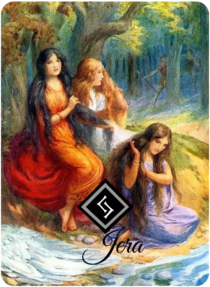 Brynhild, valkyrian som överbringar kunskap och inte bara är ett stridsväsen är själv en solkvinna, liksom Siv eller Sunna, solgudinnan själv – som förstås också har starka kopplingar till den femtonde runan. Också familjen, kärlek mellan människorna i betydelsen kärlek till nästan, eller vänskap, inte sexualitet, har kopplats till solrunan, som sägs representera lycka, framgång och härliga tider,och detta hör onekligen hit. Iöverförd bemärkelse står den förstås också för sommaren och våren, eller den ljusa årstiden överhuvudtaget.
