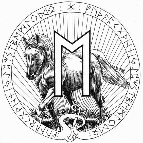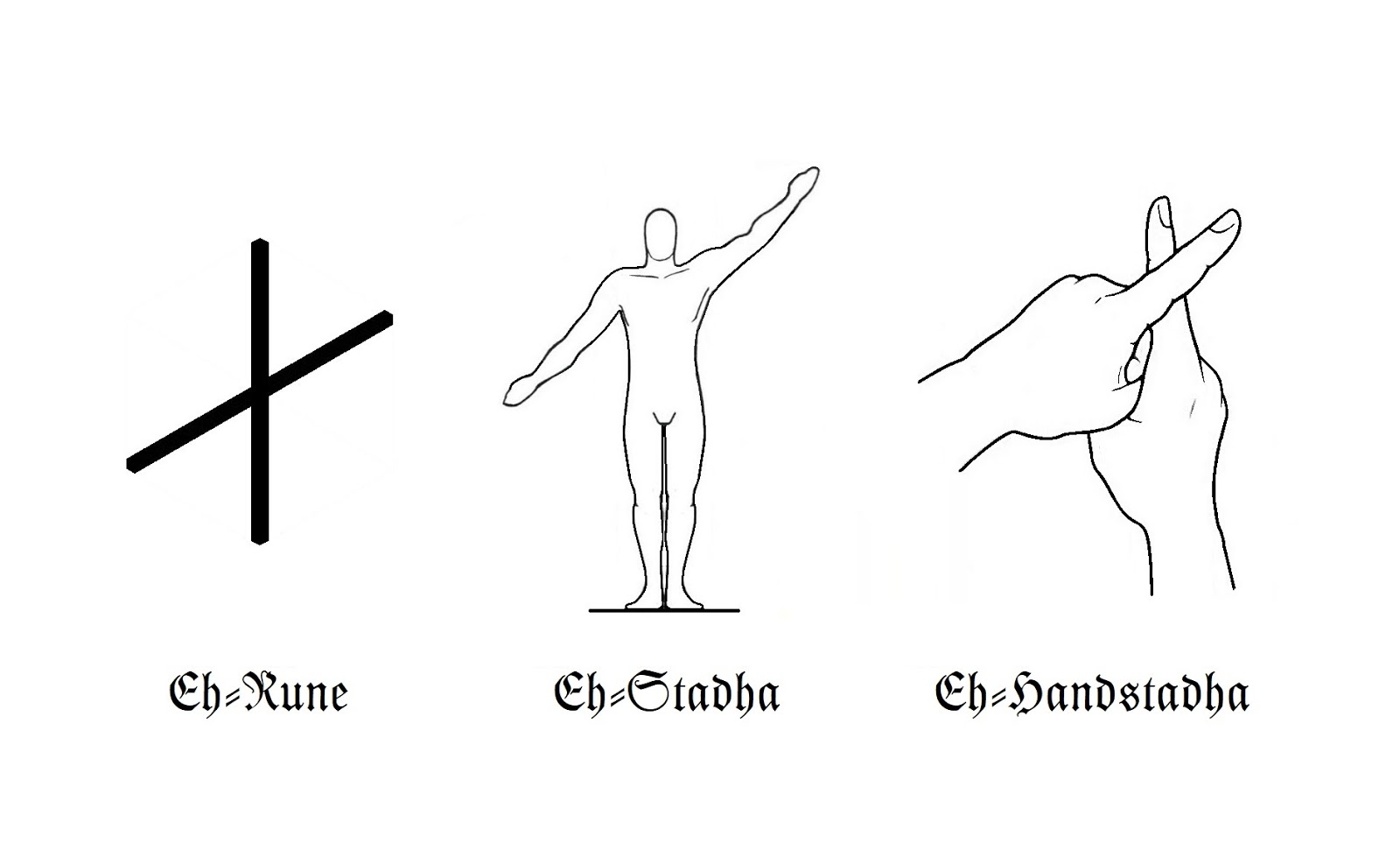 Just egenskapen att vara rastlös, ständigt sökande, ständigt trängtande efter mer vetande tillkommer Oden, valkyriornas herre. Om Reid-runan – som betecknar Tors Vagn – är en runa för resor i det yttre, eller i den här Världen, så pekar Eh-runan upp emot det översinnliga, och en tillvaro i evigheten, bortom Midgård.