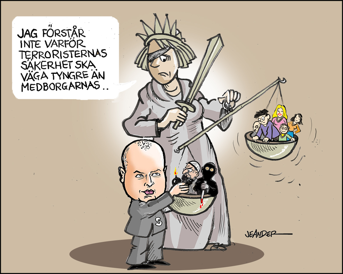 Inte mindre än tre gånger i rad har Ministern personligen sagt att det behövs en ny anti-terror lagstiftning (rätta mig gärna om jag har fel !) och inte mindre än tre gånger i rad har Lagrådets juridiska experter tillbakavisat den produkt, som Ju-dep lade fram. Man har konstaterat, att Ministerns definition av begreppet ”samröre” trotsat all logik, och att det satt hela rättssäkerheten i fara. Vad är ”samröre” ? Att någon bor i samma trappuppgång som en terrorist, och antagligen hejat i trappen på honom ibland ? Att någon haft en terrorist som medresenär på sin buss – eller något vida värre, som när någon med vett och vilja givit bidrag och finansiellt stöd till en organisation som sysslat med grov politisk terror ?