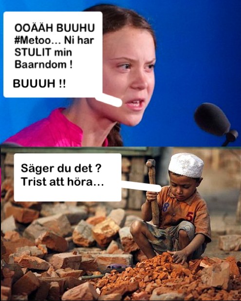 Extrem flygskatt i Sverige, eller andra ensidiga förändringar i vårt land har knappast någon påverkan globalt sett, och övermaga föreställningar om ”föregångsmannaskap i den feministiska utrikespolitiken” och andra av Löfvén-regimens floskler kan vi nog lämna därhän. Fler skribenter än jag har konstaterat, att den sk ”Greta-effekten” nog helt lär utebli, och för övrigt – är det inte ganska ironiskt, att denna hycklande barnunge själv släpper ut mer CO-2 med sina resor runt halva klotet, och idiot-krav på att få tala i Sveriges Riksdag ? Varför skulle våra parlamentariker alls lyssna på detta sjuka, förvirrade barn ?