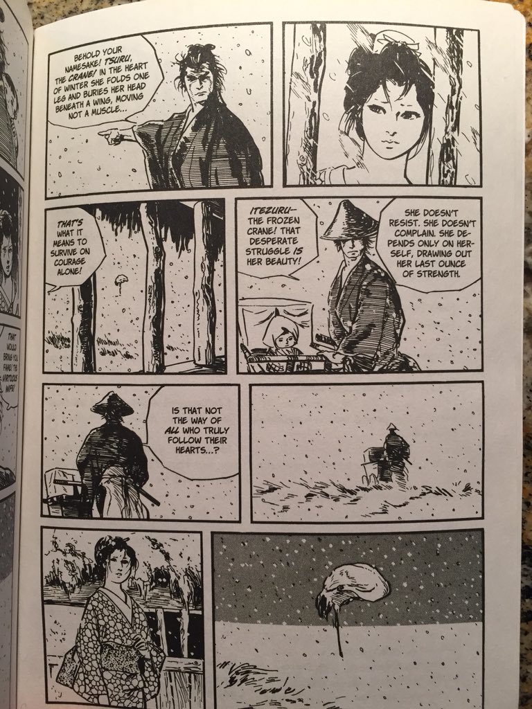 ”Skåda ! Tranan om Vintern sticker näbben under ena vingen, och inväntar Våren, stående på ett ben. Hon rör sig inte, men uthärdar allt ! Sådan är Överlevarens väg !! Påminner detta inte om livet hos de människor, som valt att leva för sin uppgift… ? Därför – håll fast vid den enda väg, som alls är värd att gå – Gudarnas och Livets !”