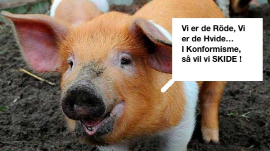 Utanför Odense, förresten, ligger galleri Svinestien (som jag skrivit om på en av denna bloggs tidigare uppenbarelseformer) som en annan hednisk kulturbegivenhet. Stället ägs av en synnerligen tolerant dansk, som ofta för en mycket intressant debatt om yttrandefrihet och konst – och på galleriets blogg kan man möta artiklar om Hur kända barnböcker censureras i Sverige, om Salafisters och andra Monoteisters härjningar, en artikel om hur en viss jeschua ben yussuf förvandlade vatten till vin och vad vi eventuellt kan lära oss av det, skriven av en synnerligen tolerant dansk präst, liksom en ännu intressantare artikel om Dan Park (eller är det ”Pork” ?) – den kände svenske gatukonstnären – tillika en av de få konstnärer i Sverige, som hamnat i fängelse på senare år.