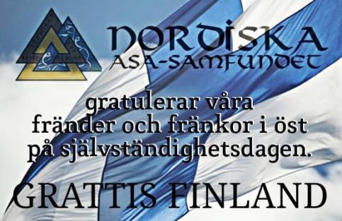 Så är det inte i vårt broderland i Öster, för där Sveriges frihet minskat, står Finlands frihet kvar… Finland har upplevt inte mindre än fyra krig under 1900-talet, och stått berett att försvara sig, också där Sverige svikit. Inbördeskriget, Vinterkriget, Fortsättningskriget och Befrielsekriget emot Nazisterna är historiska skeenden, som varje Finländare minns. Nordiska Asa Samfundet hyllade idag Finlands frihet med ännu en sk ”meme” för allmän spridning. Själv gör jag det med en dikt av den Finlandssvenske poeten Jarl Hemmer, skriven 1918… Också annat finns, som jag drar mig till minnes denna dag, men det ska jag kanske berätta om, när Midvintersolståndet kommer.