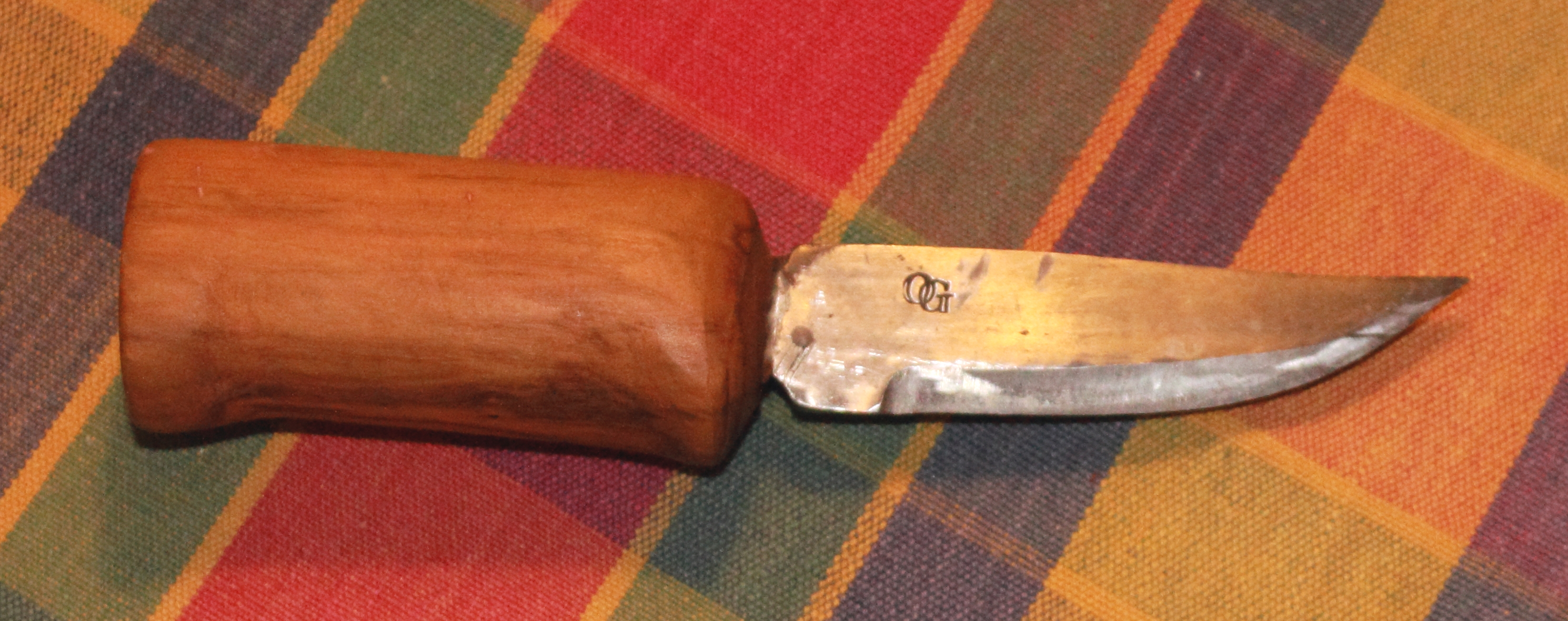 Min egen ”Birkakniv” för runristning, med skaft av körsbärsträ, taget från Birkas borgberg…