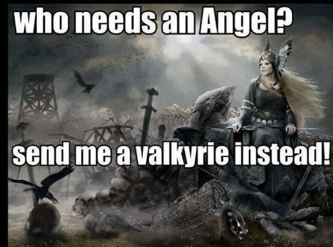 Sänd mig en Valkyria, säger jag. En erfaren, som inte är oskuld alls, utan vet vad tusan hon pysslar med.