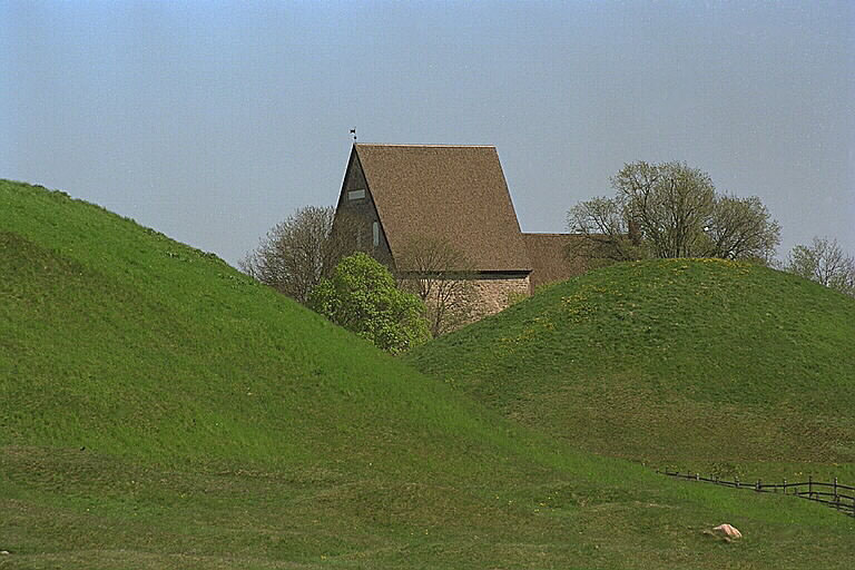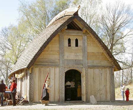 Denna rekonstruktion av ett Vikingatida Gudahov finns vid Ala på mellersta Gotland