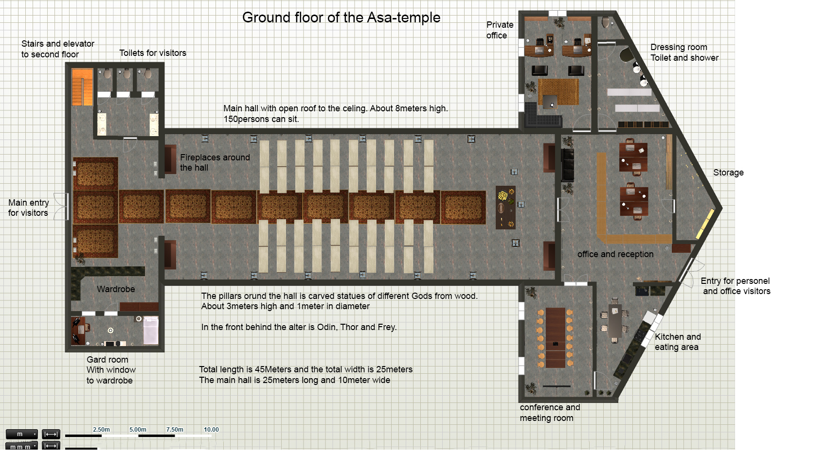 De ursprungliga Gudahoven låg ofta intill stormannagårdar eller Sveakungens egna ”husabyar” ( i Sverige) och var inte bara religiösa byggnader, utan lika ofta sekulära gilleshallar eller bostäder för de allra mest framstående i samhället. För det mesta föredrog dock alla att dyrka sina gudomar utomhus, och inte stänga in dem under tak (vilket också är omtalat i Eddan). Asatron var och är en naturreligion, och vad Asatrufélagid strävar efter – nämligen en helt modern byggnad, som också är bibliotek, forskarbostad och ”community center” har jag redan beskrivit i tidigare inlägg.