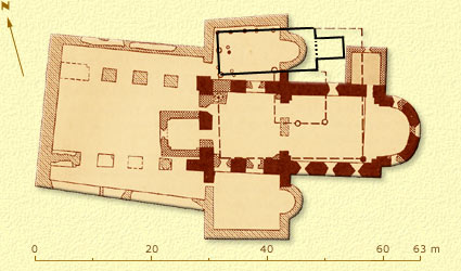 Den röda romben på kartan, visar Gudalunden, som höggs ned. Blå linje är gränsen för Kyrkans Markinnehav. Påvestenen står minst tjugo meter in på statens mark !