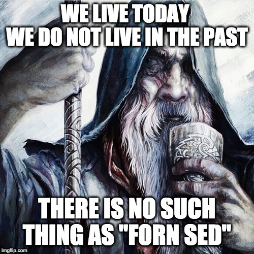 Tidigare har det varit mycket illa ställt med den saken som vi alla vet, inte minst i Sverige. Vi har ”Samfundet Forn Sed” och deras drogliberala Söndags-schamanism, som förstört oerhört mycket för oss alla, och svårt solkat och skadat Asatrons anseende i vårt land, vilket syns inte minst i deras taffliga introduktionsfilmer på nätet. Asatron är för det första inte någon tom ”sed” eller någon mekanisk upprepning av forna tider, inte heller något multikulturellt mischmasch eller New Age Hash for White Trash, vilket ”fornsedarna” hela tiden ägnar sig åt.