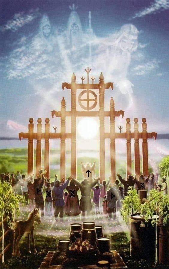 Det kristna trefaldighetsfirandet – som skulle ha något med Gud, sonen och någotslags inbillad ”ande” att göra – förstods aldrig av den svenska allmogen. Än idag har vi väldigt dimmiga begrepp om varför vi alls skulle fira en påtvingad, kristen tre-enighet, eller vad ”trefaldighetsnatten” är för något. Men Asatron och alla gamla Indoeuropeiska religioner har, som redan George Dumezil visade på 1950-talet, sina egna gudatriader. Vi har tre stora Huvudgudar: Oden, Tor och Frej. Nornorna är också tre, och Freja, Frigg och Hel – kvinnan i tre olika åldrar – är tre till antalet de också, liksom ”Hög, Jämnhög och Tredje” – Snorre Sturlassons namn för de tre hedniska huvudgudarna i ”Gylfaginning”.  Oden, Höner och Loke skapar enligt en version av Eddans skapelsemyt de första människorna, och ibland har myterna också nämnt, att Tor, Oden och Loke befinner sig ute på vandring, medan Frej – som ju är åkerns och åkerbrukets stationäre gud, som aldrig lämnar den plats där han slagit sig ned – har fått stanna hemma ur den sista gudatriaden. Också i keltisk, grekisk, romersk mytologi räknar man med triader, eller tre huvudgudar – och ödets gudinnor är tre, de också – i alla dessa hedniska religioner – som är mycket, mycket äldre än kristendomen. Så – var kommer Trefaldighetsbegreppet ifrån ? Kom ihåg att det var en hednisk uppfinning och en hednisk tradition från början…