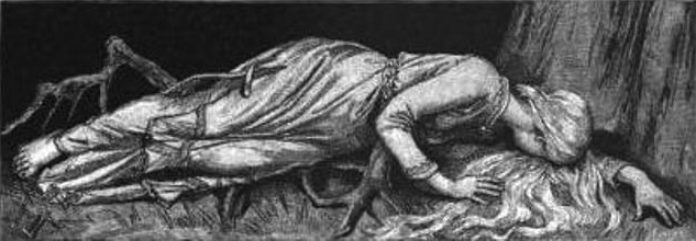 Idun vid Världsträdets fot – illustration till Nils Fredrik Sanders Edda från 1890-talet
