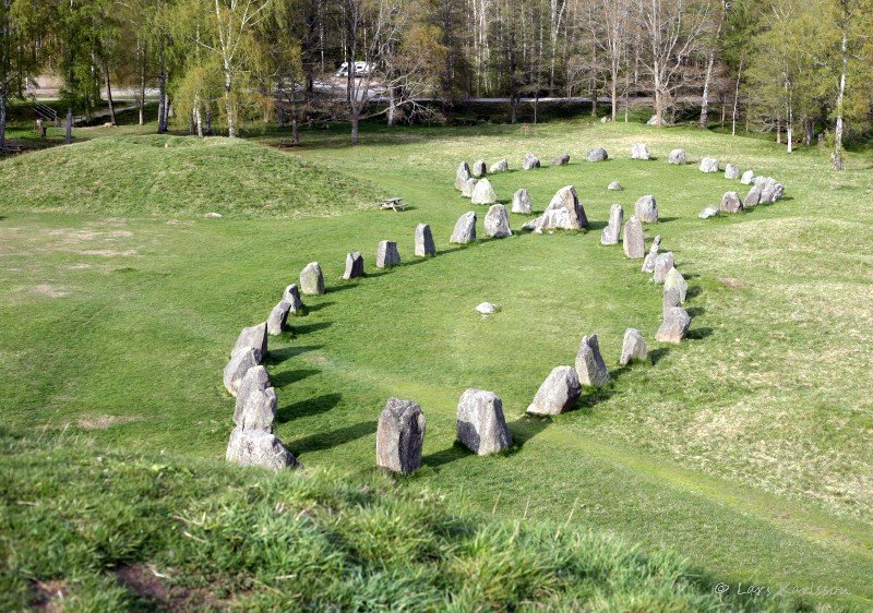 Det 56 meter långa stenskeppet vid Runsa – den största Skeppssättningen i hela Mälarbygden (foto: Peter Kåhl)