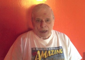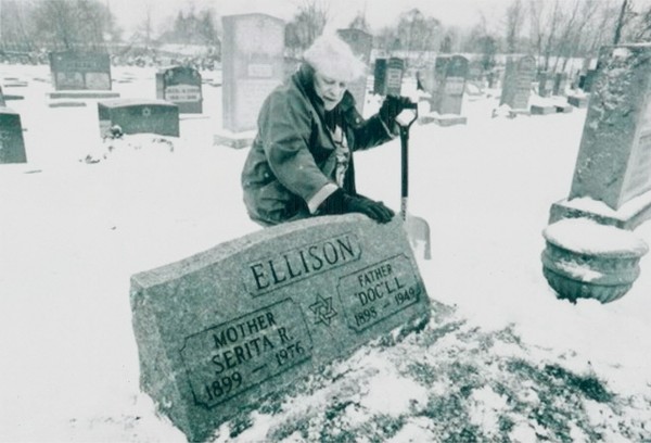 Harlan Ellison vid sina föräldrars grav i Painesville, Ohio – småstadshålan där han föddes under depressionen på 1930-talet Hans mor var pianolärarinna, hans far tandläkare. Inte alltför kreativa yrken, kanske. Han var också amerikansk jude under 30-talet, och var 11 år när Andra Världskriget slutade – en period av historien då den internationella judenheten låg mycket pyrt till, för att nu uttrycka sig både milt och en smula rått på samma gång. Som barn var han hackkyckling, vilket han senare skulle återskapa i ett par sentimentala noveller som ”One Life, Furnished in Early Poverty” (”Berättelse om ett liv, inrett i tidig fattigdom”) där en tidsresenär åker tillbaka och möter sig själv som barn, bara för att finna, att det är tidsresenären själv som gör barnet till vad det senare blev, genom att åka tillbaka till framtiden (en senare Hollywood-film) och överge sitt tidigare jag, som blir än mer traumatiserat och övergivet av den upplevelsen. En annan snyftig liten historia på samma tema – lika intensivt självutlämnande (vilket Harlan Ellison alltid var) kallad ”Jefty is Five” handlar om en man, som fått förmågan att stoppa omvärldens tid – alla gamla radioprogram, all musik som fanns på trettiotalet, alla tidningsrubriker som de hade då osv osv ”kommer tillbaka” igen – och de senare födda personer som upplever detta, får helt enkelt ”noja och spader”. Samma tema återfinns för övrigt i en tecknad film, benämnd ”Cool World” som aldrig gått upp i Sverige – huvudpersonen går till slut in i en imaginär värld som hämtad från tecknade serier typ Will Eisner’s ”Spirit” eller ”The Shadow” för de som nu känner till dem. I den filmen förekommer också minst en referens till Harlan Ellisons Stockholmsbesök under 1980-talet, men jag tänker inte tala om för er var i filmens ”storyboard” den referensen förekommer.