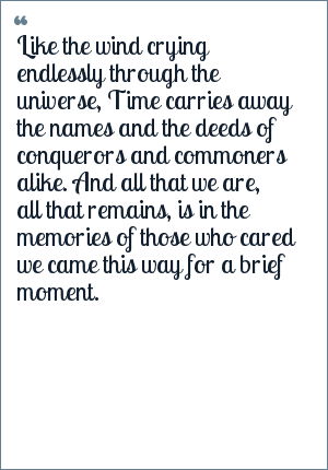Han är inte glömd. Skogens bröder minns honom. Han ville freden, men fann bara kriget. Han ville hela tidens sår, men ingen lyssnade på honom.
