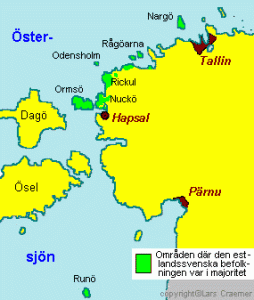 Förutom de stora svenskbygderna på Dagö och Ösel var svenskarna i majoritet ända tills Stalins maktövertagande i slutet av Andra Världskriget. Det gällde även Odensholm, Runö, Ormsö, Nargö, Rågöarna och flera områden på det Estniska fastlandet.. Jonathan Lindströms teorier är intressanta för hedningar i båda länderna, eftersom de visar på de kristnas vanliga utrotningskrig och försök till folkutbyte. Samma metoder används ju som vi fått se än idag, och så var det även på Stalins tid, när svenskbygderna i Estland avfolkades. Teorierna bygger på det faktum att man kunnat hitta ett 40 tal gårdar på norra Öland som avfolkats och övergivits under tidigt 1200-tal, samtidigt som motsvarande bebyggelse, med åkermarken indelad i stänger och alnar – måttsystemet är unikt för just Öland – dyker upp på Ormsö. Ungefär 200 personer ingick i kolonisationsvågen 1206.