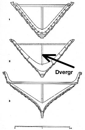 ”Dvergr” på norröna var ursprungligen en sak ombord på en båt, ett högst behändigt litet stag, som höll tofterna uppe på Vikingarnas fartyg.