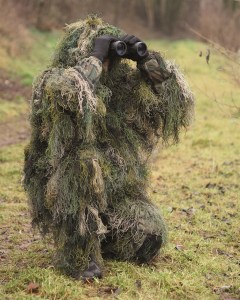 I avsnittet ”The Walking Trees” har man utan Catweazles vetskap hyrt ut det slott han bebor till brittiska ”Territorials” eller Hemvärnet, som tycker att det är ett bra övningsobjekt. Inte bara gående och levande träd visar sig i omgivningarna, utan också prickskyttar i ”Ghillie Suits” eller moderna kamouflage-dräkter som den här ovan – och Catweazle tror förstås att detta är riktiga tomtar eller troll, som han nu ser i verkligheten. Ghillie Dhu – den keltiska bergsvarelse de moderna dräkterna tagit sitt namn ifrån, är faktiskt levande folktradition den också, så där ser man.