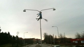 Ett annat avsnitt handlar om hur Catweazle får syn på ett gäng moderna feminister i den gentrifierade by han till slut bebor – han har blivit inhyst som Slottsspöke, och herrgårds-ynglingens föräldrar ser honom som en god inkomstkälla, medan Catweazle själv börjar ägna sig åt vad han kallar ”alkemistiska experiment” – men i mötet med de 40-50 åriga kärringarna och den lokala ”hängbröstvänsterns” representanter, får han för sig att de säkerligen är häxor allesammans. Häxor kan som vi vet flyga på kvastar, och då tänker Catweazle som så att han måste stjäla en kvast från dem, ty då kan han också flyga.