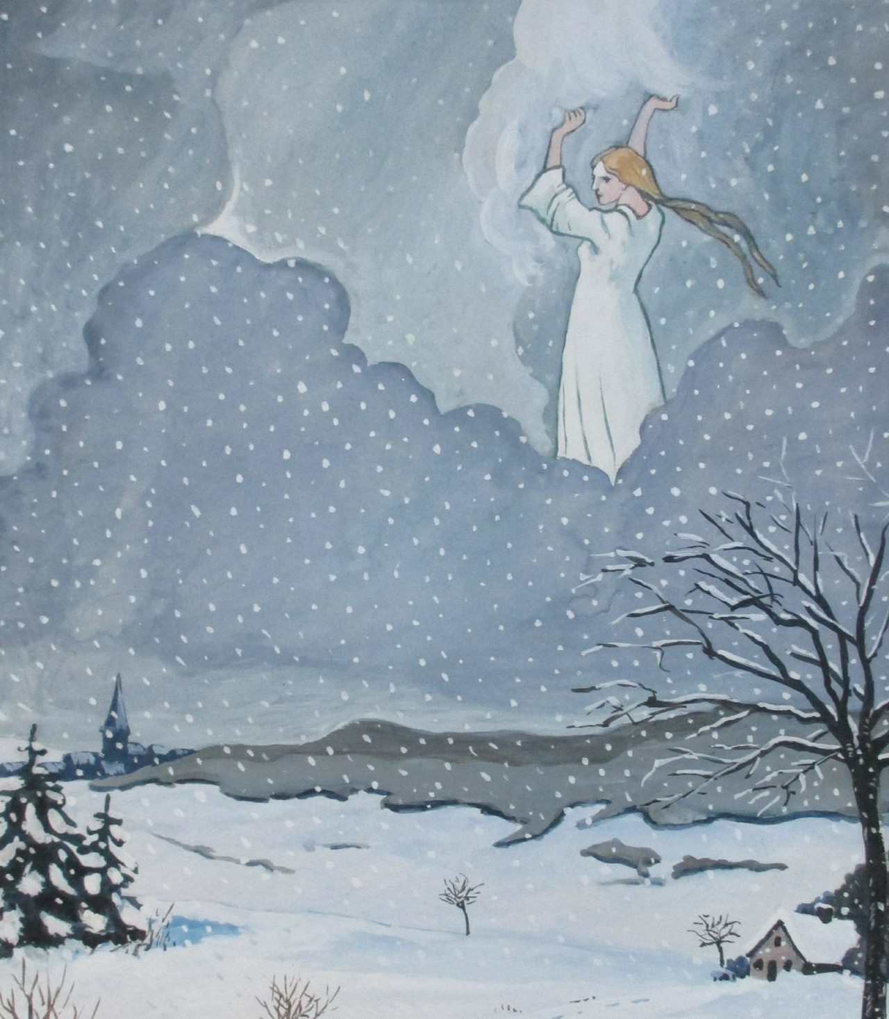 ”Frau Holle” tänks skaka ett täcke över jorden, vilket ger snöstorm