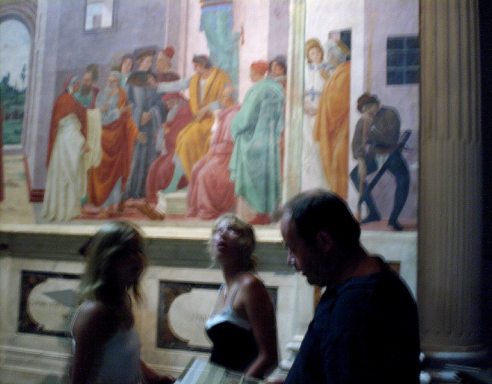 Jo, några gatumusiker, som framför Harry Belafontes ”Day-O” – men basisten deras ser exakt ut som den där Klahn, för 25 år sedan, fast inklusive framtänder, då. Sångaren har ovanligt klen röst. Han kan inte ens ta i ordentligt på ”daeeiii-ooh” som man ska göra, och som till och med den glade norrmannenMarve Fleksnaes kunde göra på sin tid. Jag visar dem genast hur en slipsten ska dras, och hur det skall göras – på värsta sappör-manér, så att säga. Basisten – han som ser ut som en gammal kamrat – klämmer i kraftigt han också. Vårt ”DAEII-ÅÅH!” ekar ut över piazzan vid Ufficierna, till turisternas stora förnöjelse. Bandet av gatumusiker tjänar stora pengar, och fastän jag rätteligen borde kräva del i de 40 Eur extra som de nu fått, går jag glatt sjungande därifrån och tänker på Fra Filippo Lippi, en annan stor artist från Florens, fast av ett annat slag.