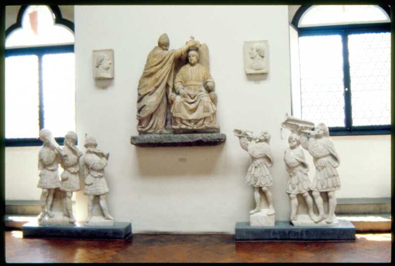Det gäller det här rummet ”Sala di Condottieri” som förut innehöll en 1400-tals rustning (gjord av delar ”från tiden” även om alla inte har samma ursprung) där en staty – i tysk salad – en ganska typisk hjälm – av Bartolomei di Colleoni – en annan av de verkligt stora Kondottiärerna – nu har bytts ut mot Sir John Hawkwood (ca 1318 – 1394) – kanske den störste av dem alla – som i egenskap av en av mina favoriter ur historien fodrar ett helt eget inlägg… Hawkwood var inte för inte verksam just i Florens, och dog som hedersmedborgare i den staden vid mer än 78 års ålder – en mycket hög ålder för att vara på medeltiden, allra mest för en man som förde oavbrutet krig i mer än 60 år av sitt liv – och delar av den rustning man nu visar, skall faktiskt ha tillhört honom, sägs det..