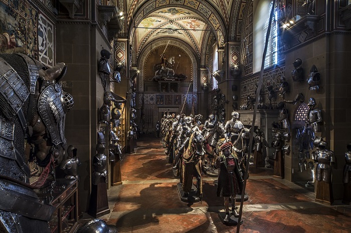 De försåg sin park med ett egyptiskt tempel, ett tempel åt Flora och ett Orangeri, ett stort stall och annat som hör till en Florentinsk villa, men det stora slagnumret är förstås än idag själva rustkammaren. Man får dock inte själv gå omkring i villan ensam, om man nu trodde det – bara guidade turer är tillåtna. Italienarna betonar också hela tiden att det hela är en privatbostad, i stil med Stockholms eget Hallwyllska museum; och inte bara en rustkammare, men ändå är det förstås rustkammaren; som alla besökare kommer för att se.