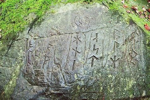 Detta är tydligt och klart 4 algis- eller älgrunor formade till ett solkors, och det vet väl alla mina läsare att redan Laila Freivalds, Justitie-Minister i Sverige av alla länder, faktiskt ville förbjuda Solkorset som symbol, under påståendet att det skulle vara just nazistiskt ? Nu gick det förbudet aldrig igenom, därför att Solkors finns också i kristna kyrkor, redan från medeltiden och framåt, samt i Kiviksgraven, för övrigt…