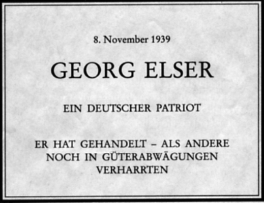 Elsers handlande visar i alla fall en sak. En enda beslutsam individ, kan – rätt placerad och om han tänker och handlar rätt – ändra hela den mänskliga historien. Diktaturer kan stoppas, och kvävas i sin linda. Långt borta på Island har ingen mindre än Håkan Juholt – en mycket osannolik attentatsman, får vi väl säga – nyligen sagt att även Stefan Löfvéns Sverige håller på att utveckla sig till en diktatur, även om vi väl får konstatera, att Regeringen Löfvén – trots ”Mollgan” Johansson, Romson och många andra, än så länge ligger hästlängder efter Hitler och hans anhang.