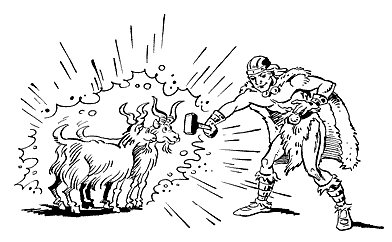 – ”Ånej, inte ännu” svarade honom Grimner eller Oden, den av Asarna som har flest namn. ”Jag ville bara att du skulle sko min häst”
