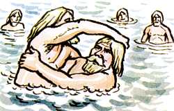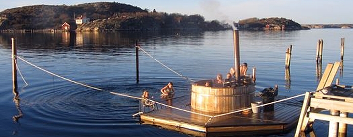 Man kan numera bada bekvämt i en sån här, men annat var det förr i tiden. Då simmade man rätt ut från kusten, och den som sist vände och simmade inåt land, hade vunnit simtävlingen….