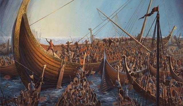 Sven Tveskägg blev ensam kung över hela Danmark, Rügen, Norge och England… Detta lovade Torleif, och sedan skaffade han sig överfart till Norge. Så kom han till Trondheim. Då uppehöll sig Håkan jarl i närheten, på Lade Kungsgård. Torleif klädde sig nu som en åldrig stavkarl, och repade upp ett långt hamprep, som han hade till skägg. Så tog han en stor säck och dolde den under paltorna, så att det skulle se ut som om han åt den mat han stoppade i säcken, för öppningen på den fanns uppe under skägget, och gömdes helt av detta. Sedan tog han två gamla skidstavar och fäste jättestora broddar på dem, och sen började han haltande och kutryggig gå stavgång. Slutligen kom han fram till Lade, och då var där Julafton.