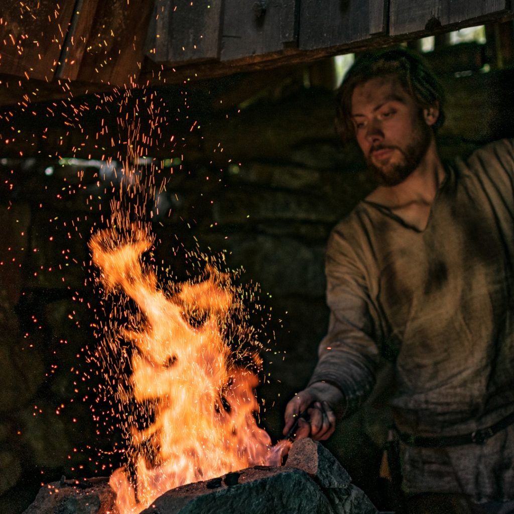 – ”Den konsten kan jag” sade smeden, och reste sig sakta från bänken där han satt, ”Men jag måste be dig om ursäkt, ifall det går lite trögt”