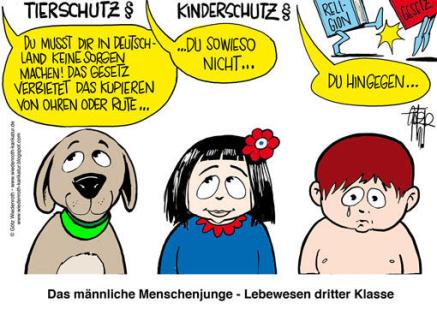 Genom att påstå att deras vidskepliga stenåldersbaserade vrickade övergrepp på små barn har företräde över modern människorättslagstiftning har företrädare för religioner kunnat kräva att det ska vara tillåtet att skära sönder snopparna på små pojkar.