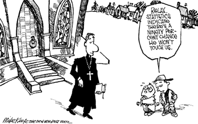 Det är nämligen just i själva tron, just i själva kristendomen och katolicismens sätt att fungera som problemet sitter. Prästen tros vara den allsmäktige gudens ombud, och tilldelas därför total makt över sina församlingsmedlemmar, ja till och med barn. ”All makt korrumperar,” sägs det ofta ”men allsmäktighet, korrumperar fullständigt och absolut…” Undviker man Monoteism, den förvridna föreställningen om ”allsmäktiga” gudar och allt vad Katolicism heter, så kan man också lösa problemet en gång för alla – annars inte !