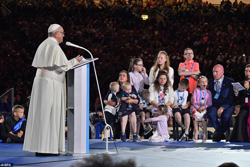 Jag har påmints om den grymma religiösa vanan, en gång utbredd i vissa kulturer, om att offra mänskliga varelser, företrädelsevis barn, i hedniska riter, sade påven under konferensen i Vatikanen.