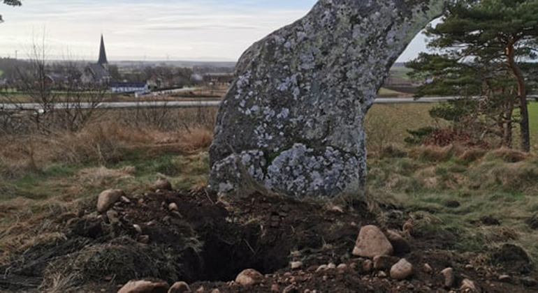 Redan våren 2018 började någon eller några personer försöka välta omkull flera av stenarna i Skånes största skeppssättning – man kan just undra varför… (foto: Mark Hanlon, Ystads Allehanda)