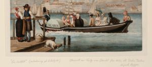 När Vevsluparna – som här på en av sjöhistoriskas bilder – till slut kom på 1830-40 talet tävlade unga kullor i folkdräkt från Rättvik emot roende, äldre kullor från Leksand och andra byar vid Siljan. Vem kunde ro snabbast – kunde man veva sig fram snabbare än man förmådde ro med ett par åror… ?