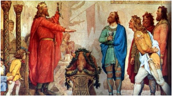 I anslutning till gårdagens text om Julskinkan, denna för hela Julhelgen och Julglädjen så essentiella maträtt, vill Hedniska Tankar nu publicera Frans G Bengtssons berömda skildring av Kung Harald Blåtands Julgille ur ”Röde Orm”. Många är de svenska hedniska familjer som läst denna text som ett slags obligatoriskt hedniskt julevangelium kring Midvintersolståndsdagen, eller annars före Jul. Till och med filmrecensenten Orvar Säfström och krönikörer i Helsingborgs Dagblad har bekänt att de gjort så, Hedendomen till fromma, och all kristendom till förfång…