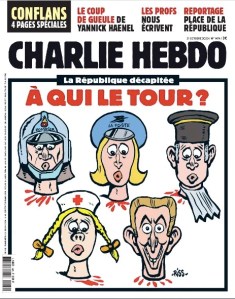 Framsidan från Charlie Hebdo, publicerad kort efter en sjuk islamists mord på Gymnasieläraren Samuel Paty i Paris förorter 2020-10-20, dvs för 5 år sedan