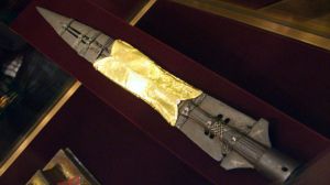 ”Ödets Spjut” eller den heliga lansen skall numera förvaras i Wien. Var det spjut, som hittades i Tryggve Rör också en ”helig lans” eller en kunga-symbol som Odens spjut Gungner… ? Finns det kvar på Vikarvets museum i Uddevalla ??
