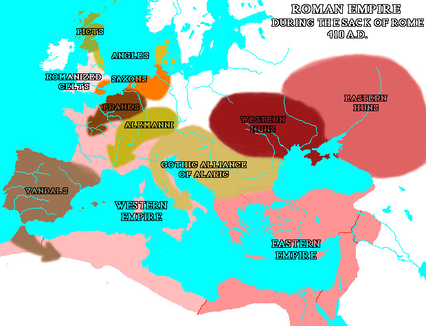 400 talets romerska kavalleri bestod till mycket stor del av Germaner och Goter – och var fullt jämbördigt med Hunnerna…