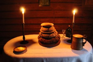 kring bordet står ett sken av hemlig eld.