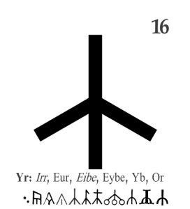 För övrigt har ju då den yngre runradens YR ibland skrivits som eide, Irr, Eur, Or och annat också på sentida runstavar och kalendrar från medeltiden och framåt, och det rör till begreppen ytterligare.. Då har man blandat ihop den med Idegransrunan, Eiwaz (med tonande Z) i den äldsta, 24-typiga Utharken